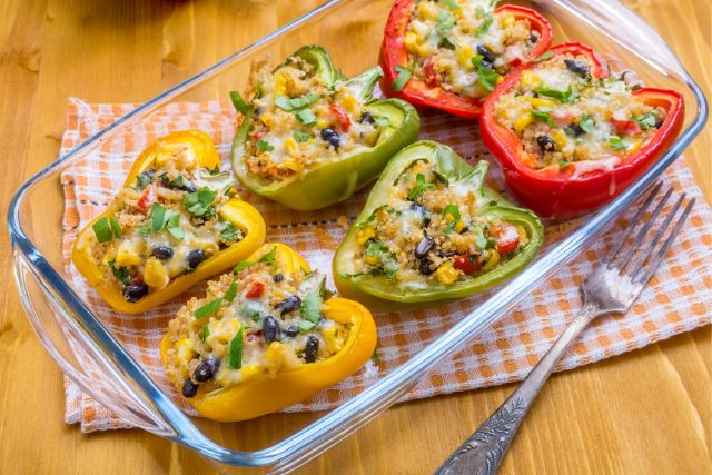 Stuffed Organic Bell Peppers with Wild Rice and Black Beans
